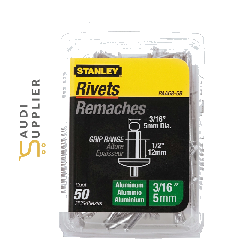 مصنوعة من الألومنيوم ، يمكن استخدام مسامير البرشام المصنوعة من الألومنيوم من ستانلي حيث قد يكون الصدأ مشكلة محتملة.