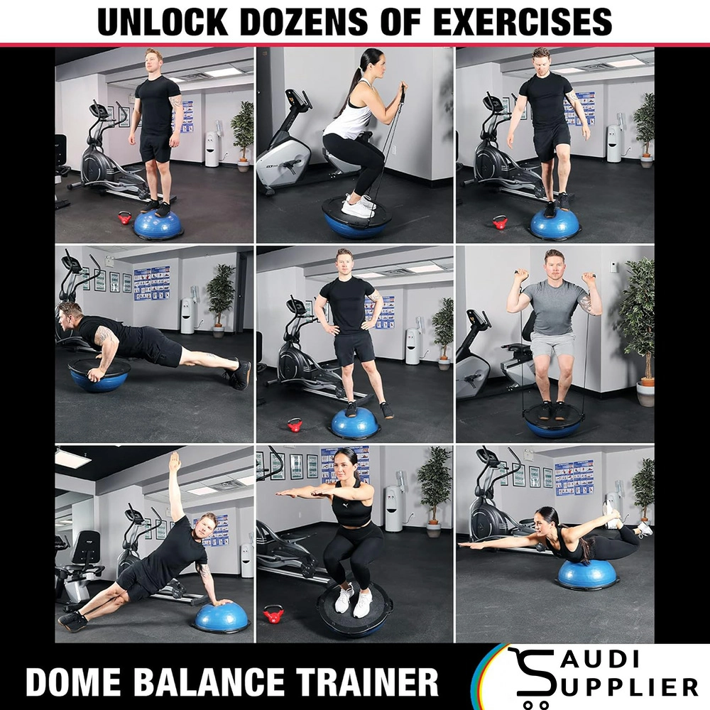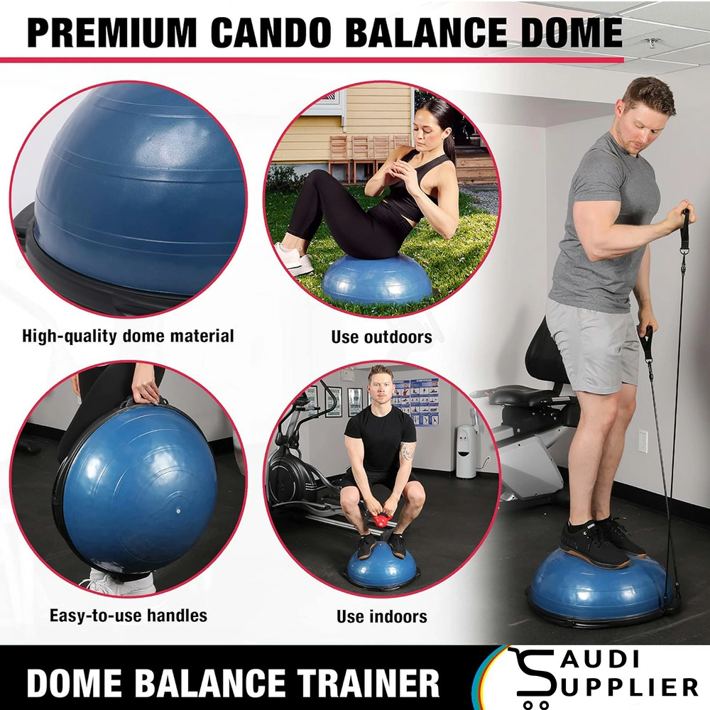 This vestibular dome is widely used in physiotherapy clinics, rehabilitation centers, sports training facilities, and fitness studios to support recovery from injury, improve proprioception, and enhance functional movement. The textured, anti-slip surface ensures safe footing, while the resistance cords allow simultaneous upper-body strengthening during balance training.