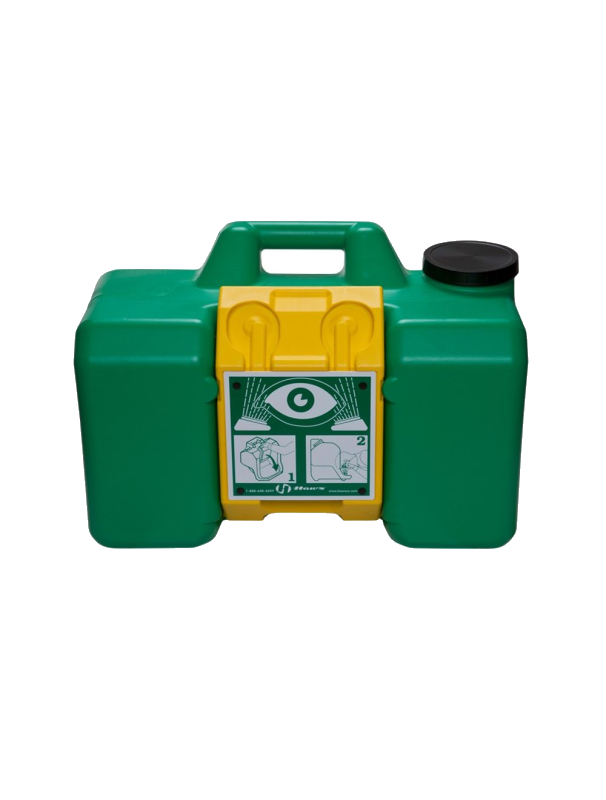 Compact portable eyewash Model 7501 is ideal for remote locations. Using gravity to supply a continuous flow of clean water to injured personnel for a full 15 minutes at .4 gpm (1.5 L), this model is a reliable source for safety. Recognizing the 7501’s full patterned flushing feature, those working in remote areas can’t help but feel confident with this piece of emergency equipment day after day.